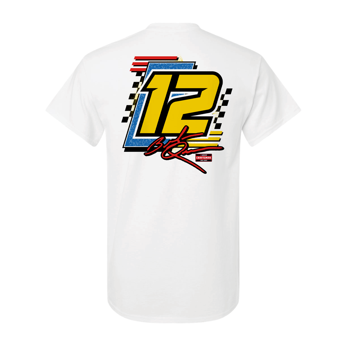 Built loud, bold, and full of personality—just like Butterbean himself. The Brenden “Butterbean” Queen No. 12 Cummins T-Shirt features a high-impact graphic of the No. 12 RAM truck, paired with checkered race details and signature Cummins power branding.
